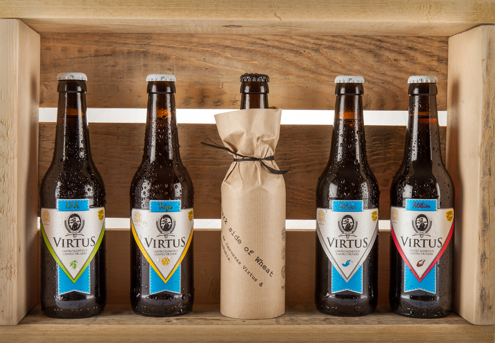 Virtus es corto y sonoro, afirma Alfonso, pero también tiene detrás otros motivos para ser el nombre de nuestra cerveza. Virtus es Virtud, y cuatro se dice que son las virtudes cardinales. Pues bien, “cuatro elementos, cuatro virtudes” es lema que estos chicos han hecho suyo aludiendo a los cuatro elementos fundamentales de la cerveza: Agua, malta, levadura y lúpulo. Pero no queda ahí la cosa, porque Virtus es también la nomenclatura de algunos municipios burgaleses de la parte norte, como Cabañas de Virtus o el propio Virtus, cercanos al embalse del Ebro, lo que también supone un guiño a la provincia.