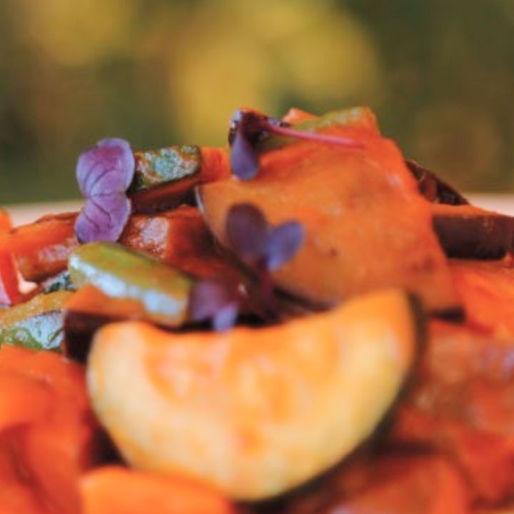 Sofríe la cebolla en aceite de oliva. A continuación añade el pimiento rojo y el verde previamente troceados. Añade el calabacín y sala. Sofríe las verduras a fuego lento durante 20-25 minutos. Incorpora el tomate frito casero Juan Ranas® y una cucharadita de azúcar.